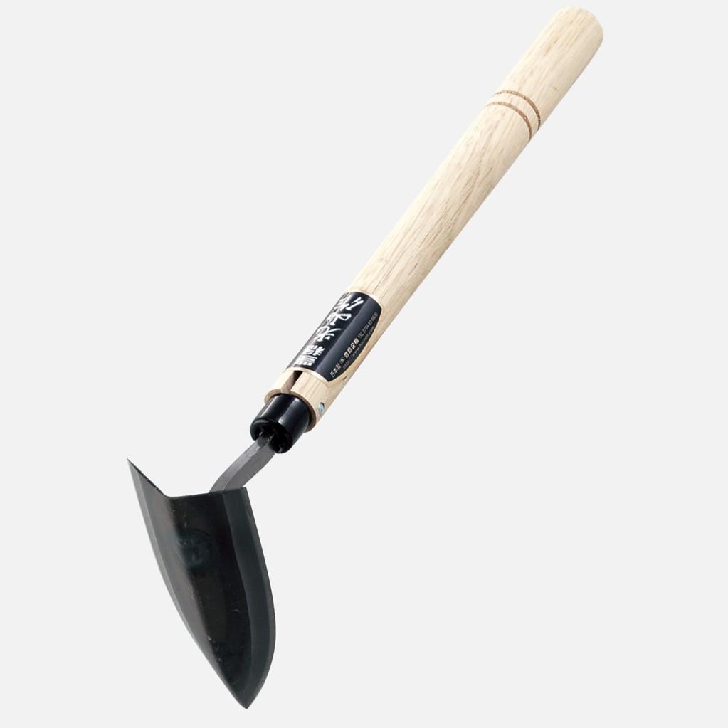 Sarclette japonaise à double tranchant sur manche en bois long de 120 cm, utilisable à deux mains pour travailler debout.